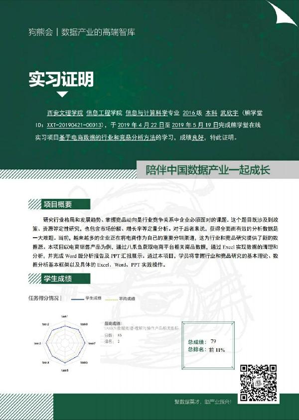 公司信息与计算科学专业员工获得狗熊会在线实习结业证书 2019年4月22日到5月26日,为期一个月的狗熊会在线实习圆满成功。这是公司《复杂数据分析与R语言》课程教学改革的一次尝试,是公司大力鼓励教师开展教学改革的一个缩影。在《复杂数据分析与R语言》课程后期,授课教师...