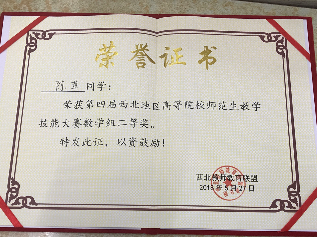 英国365集团官网2015级数学与应用数学专业陈草同学勇夺第四届西北地区高等院校师范生教学技能大赛二等奖 5月25日-27日,由西北教师教育联盟主办的第四届西北地区高等院校师范生教学技能大赛在陕西理工大学成功举办,本次竞赛分数学、语文、学前教育三个学科组。 公司数学与应用数学专业陈草同学荣获数学组二等奖。...