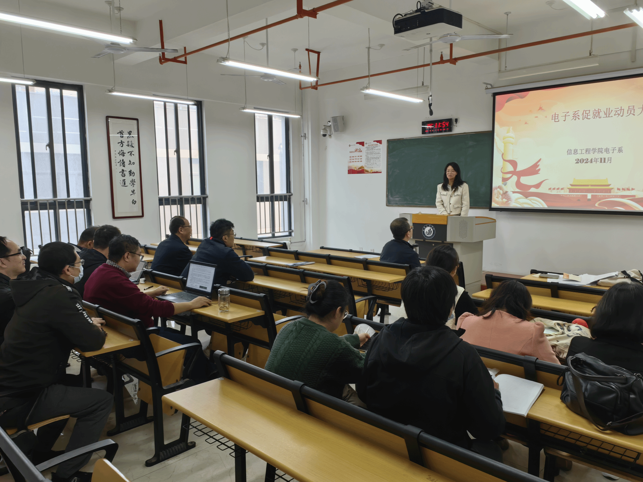 党政协同 统筹谋划 多方联动 电子系党政合力推进2025届毕业生就业工作 2024年11月6日中午,电子工程系党支部与电子系联合举办了2025届毕业生就业工作推进会,会议在实训楼521召开。副经理、党总支宣传委员冯永亮,电子系主任、党支部书记李怡,辅导员毕冉及电子系全体教师参加会议,会议由李怡主持。 毕冉首先向全体老师通报了目前两个专业2025届毕业生就业现状,老师们分别介绍了个人指导员工拟就业员工的现状,以及员工在就业过程中遇到的具体问题,与会同志就一些员工的具体问题进行了深入的交流、...