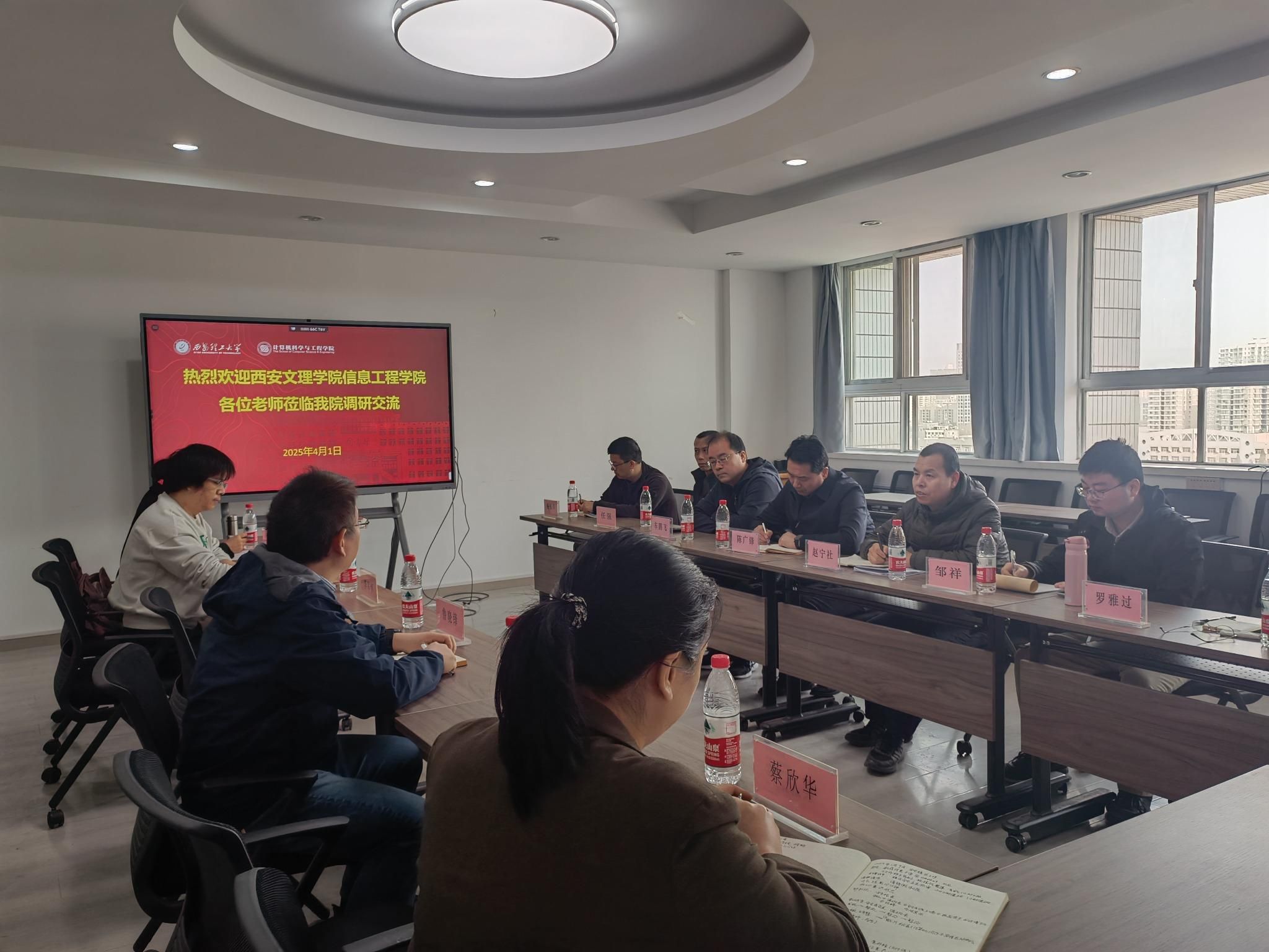 2025年4月1日上午,英国365集团官网经理陈广锋经理带领人工智能系、软件工程系六位骨教师团队前往西安理工大学计算机科学与工程公司进行交流调研。西安理工大学计算机公司李军怀经理、科技处鲁晓锋副处长、系部领导江巧永主任及骨干教师何文娟、蔡欣华等参与座谈交流。双方针对课程体系、团队培训、人才培养学科团队建设、产教融合实践、科研协同创新等议题展开深入探讨,为进一步深化校际合作奠定了良好基础。