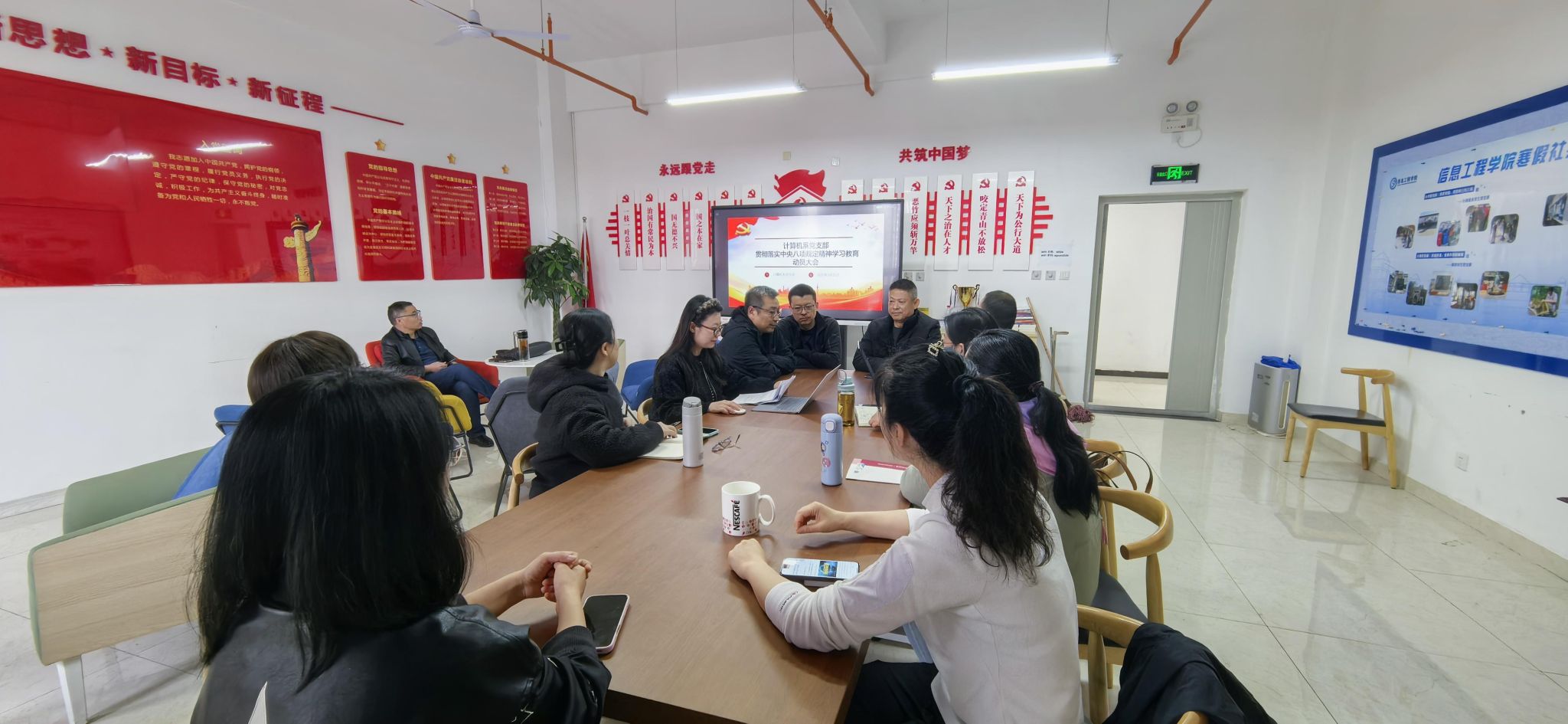 2025年3月25日,计算机系党支部开展主题党日活动,专题贯彻落实中央八项规定精神学习安排,动员全体党员以更高标准、更严要求投身学习教育,推动全面从严治党向纵深发展。会议由支部书记袁溪同志主持,全体党员通过领学文件、交流研讨、部署任务等形式,深化对作风建设重要性的认识。