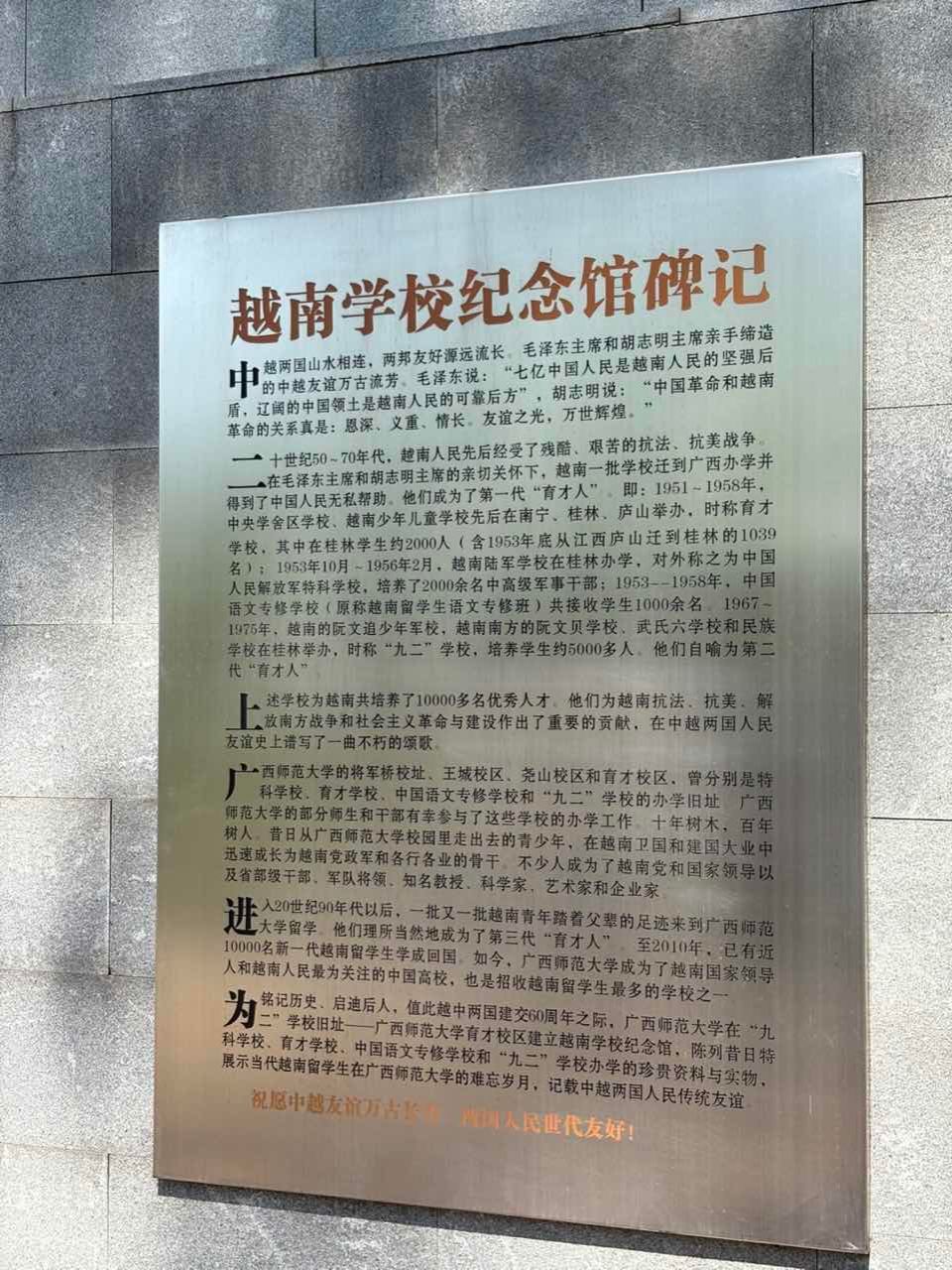 在公司党总支的统筹指导下,团队首站走进广西师范大学育才校区越南公司纪念馆和桂林象山公园开展实践研学。这座承载中越“同志加兄弟”情谊的历史场馆,以详实的文献与文物再现了20世纪50年代中国援建越南教育的峥嵘历程。崔一民老师带领党员教师与团员青年触摸碉堡弹痕,讲述桂林保卫战中军民同心的壮烈历史,同时结合师范专业特色现场讲授微党课:“教育是跨越国界的大爱,新时代教师更应传承国际主义精神,以专业素养架起文化桥梁,数学师范生既要精研专业,更要懂得用知识传递民族精神。”