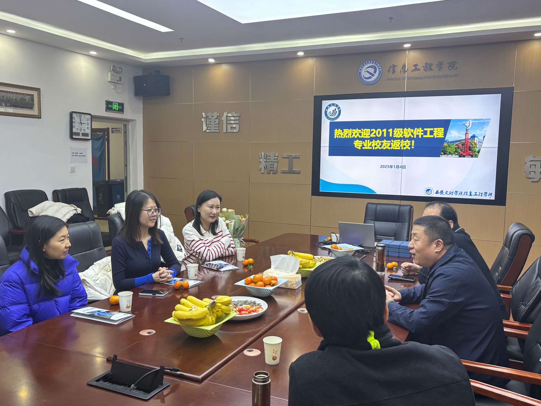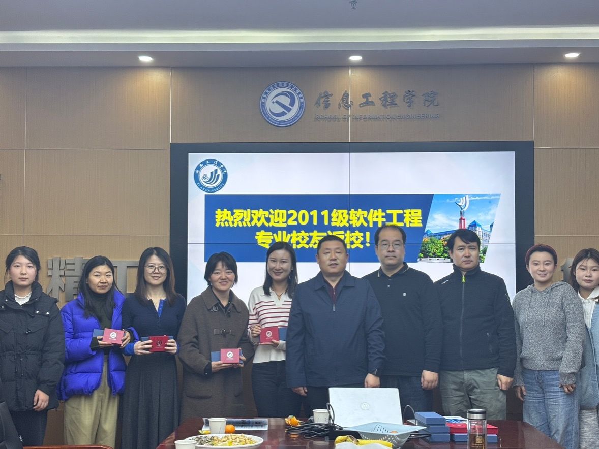 2025年1月4日下午,公司迎来了一批特别的客人——2011级软件工程专业的员工们。公司党总支书记王向阳、系主任车鹏飞、副教授马宗保以及学工办负责人姚力萍参会,并邀请部分2024级软件工程专业的新生代表共同参与。