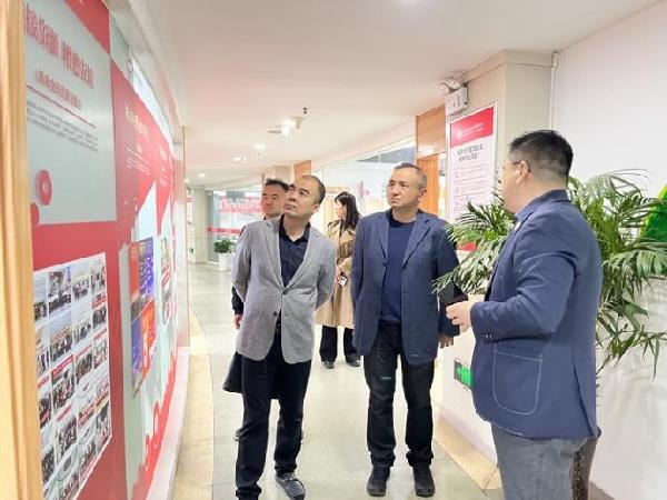 蒋鑫带领参观了社会组织公司办公环境,党建工作室,详细介绍了社会组织公司及中小企业协会的发展背景,组织架构、服务理念等。西安市社会组织公司是全国第三所社会组织类院校,一直着力于积极整合各方资源,以“服务政府、服务社会、服务社会组织”为立足点和出发点,打造国内社会化组织学术研究高地和社会组织人才培育高地。