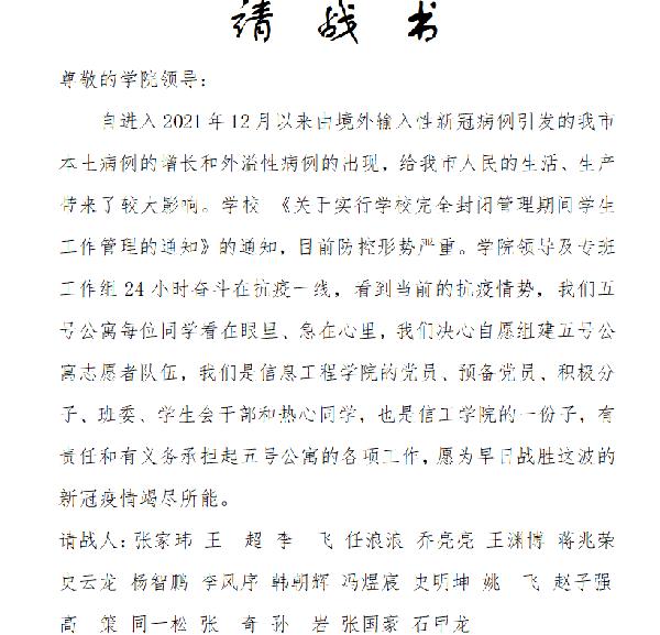 疫情就是大考,考验着公司的每一名党员干部、教师和员工,我们坚信在公司党委的坚强领导下,在全院师生的共同努力下,信工公司的各项工作必将取得满意的成绩。