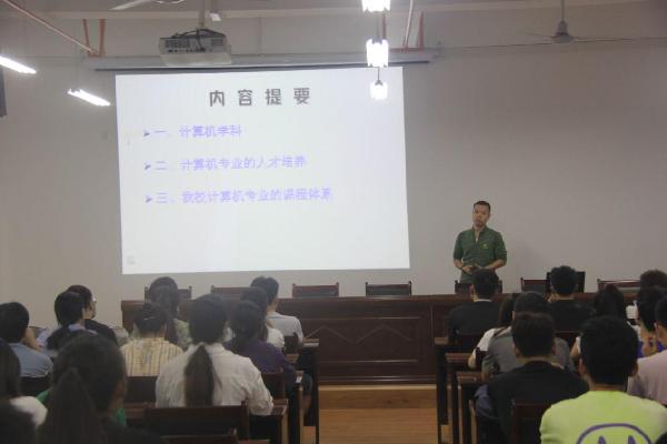 同时,计算机科学与技术专业教研室主任赵宁社老师结合当前形势下计算机科学与技术专业的就业前景和发展方向,详细讲解了本专业课程设置、人才培养计划、培养目标、团队力量、实验室配备等。讲述了计算机专业的相关内容、发展历程以及今后要学习的内容,使新生对本专业有较为清晰的认知,激发了新生学习的热情以及对未来工作的美好期望。