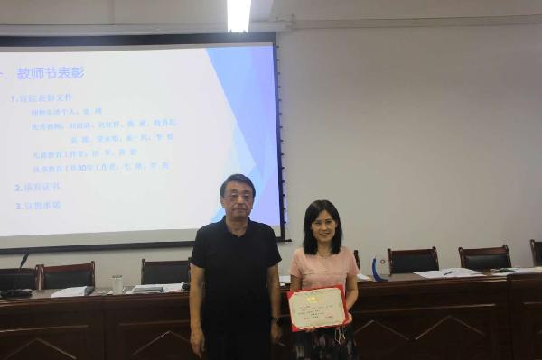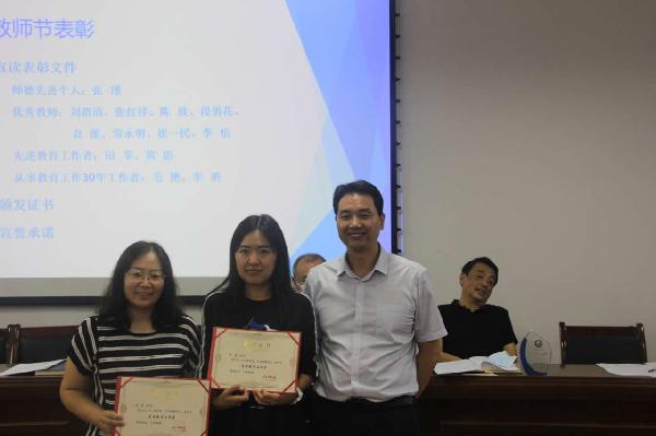 大会首先宣读了表彰决定及受表彰人员名单,公司张瑾老师荣获校级“师德先进个人”称号;刘渭清、张红祥、陈欣、段勇花、袁溪、常永明、崔一民、李怡等8位教师荣获校级“优秀教师”称号;田莘、黄影等2位教师荣获校级“先进教育工作者”称号;毛艳、李英等2位教师荣获校级“从事教育工作30年工作者”荣誉;陈贵霞、秦玮、陈希、王舟、高谨、王英等6位教师分获校级三等奖、优秀奖及参与奖荣誉;公司获优秀组织奖集体荣誉。