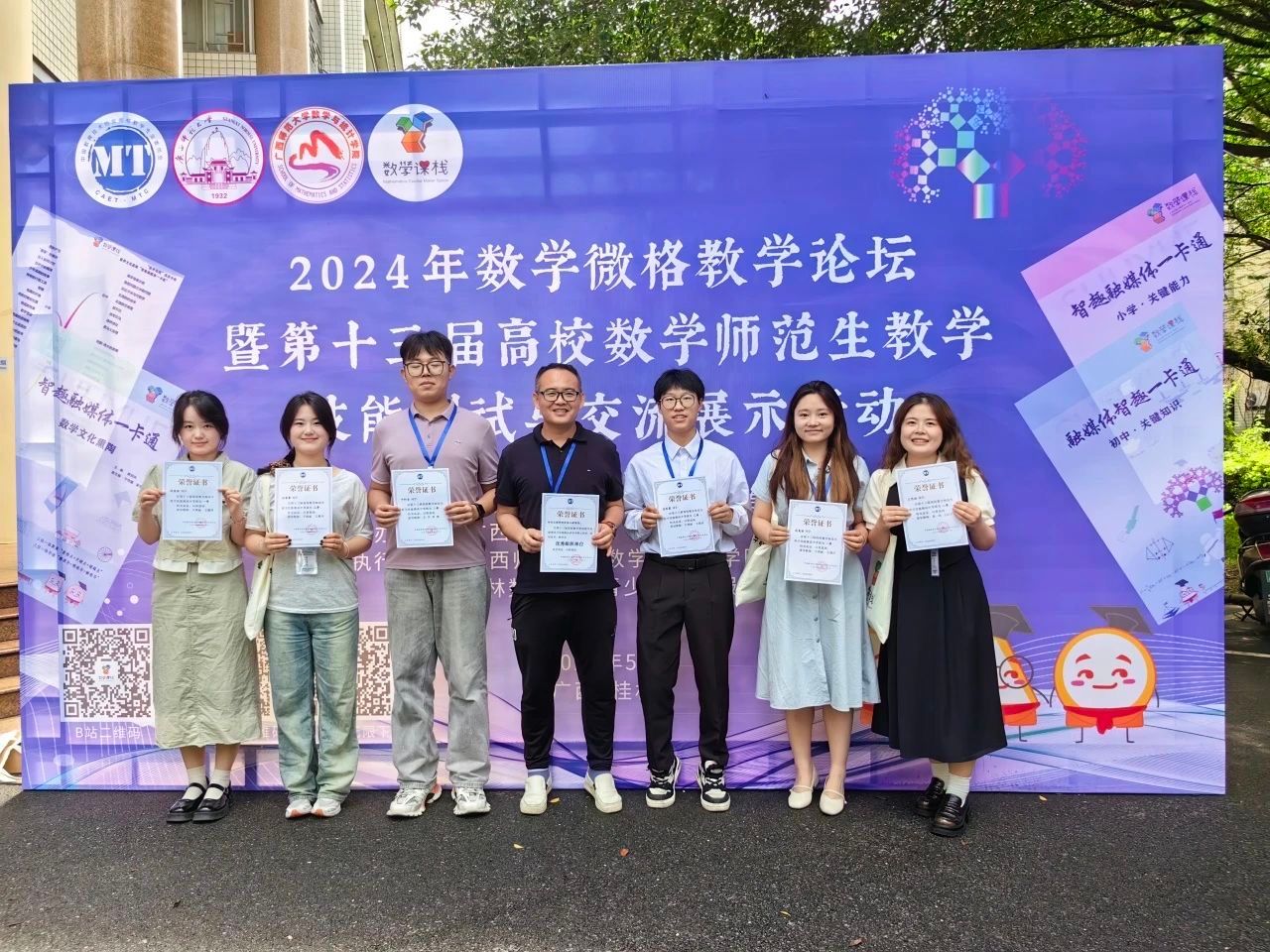2024年5月17至20日,在数学微格教学论坛暨第十三届“华文”高校数学师范生教学技能测试与交流展示活动中,英国365集团官网荣获优秀组织奖,数学与应数数学专业员工凭借扎实的专业基础和卓越的教学技能,荣获“微课设计”一等奖4名、二等奖5名,“微格设计”一等奖1名、二等奖2名、三等奖3名的好成绩。这一佳绩不仅彰显了公司在实践教学和人才培养方面的实力,更是赛教融合实践育人机制的有力证明。