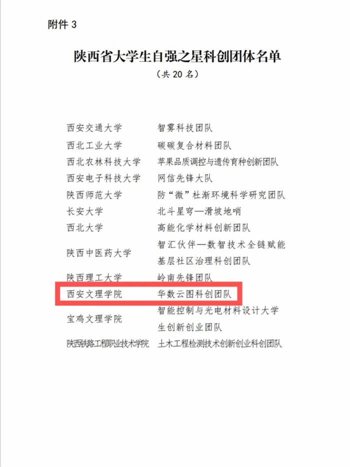 近日,英国365集团官网华数云图科创团队被评为陕西省老员工自强之星科创团体(陕西省共20支),据悉,该团体是市属高校唯一一个获奖的科创团队,这次评选也创历年之最。陕西省“老员工自强之星”是全省老员工队伍的青年代表,此次评选不仅是对我院员工成长成才的认可,也是对我院员工科创团队第二课堂创新成果的认同,更是第二课堂对标人才培养计划、服务第一课堂的充分体现。
