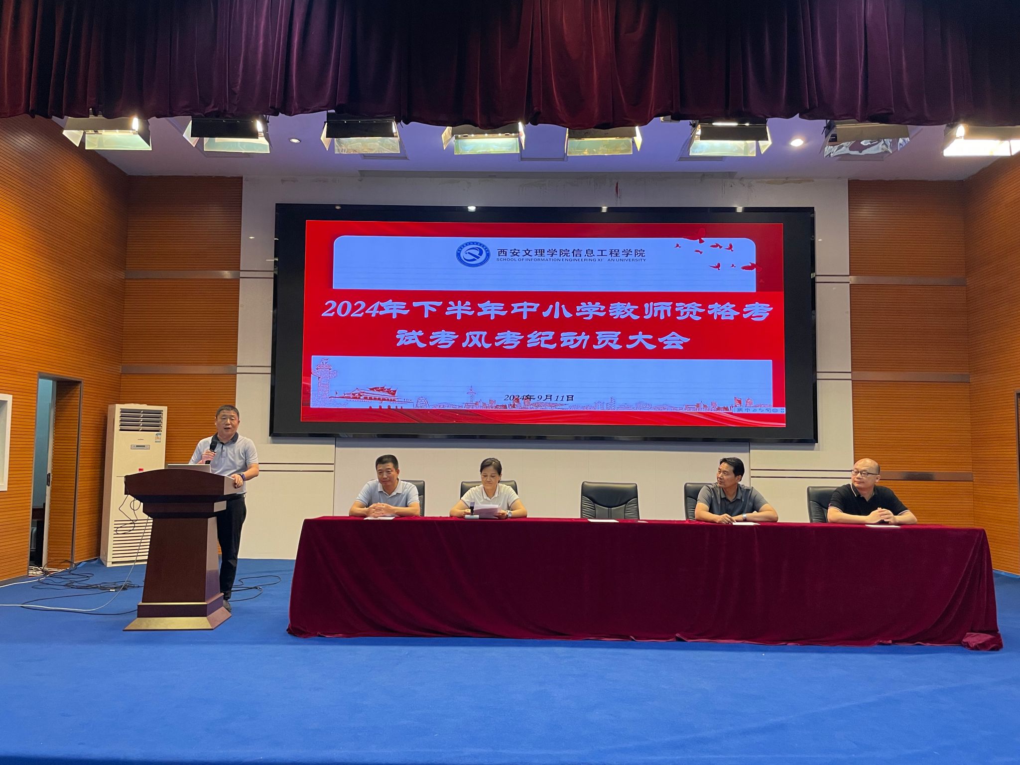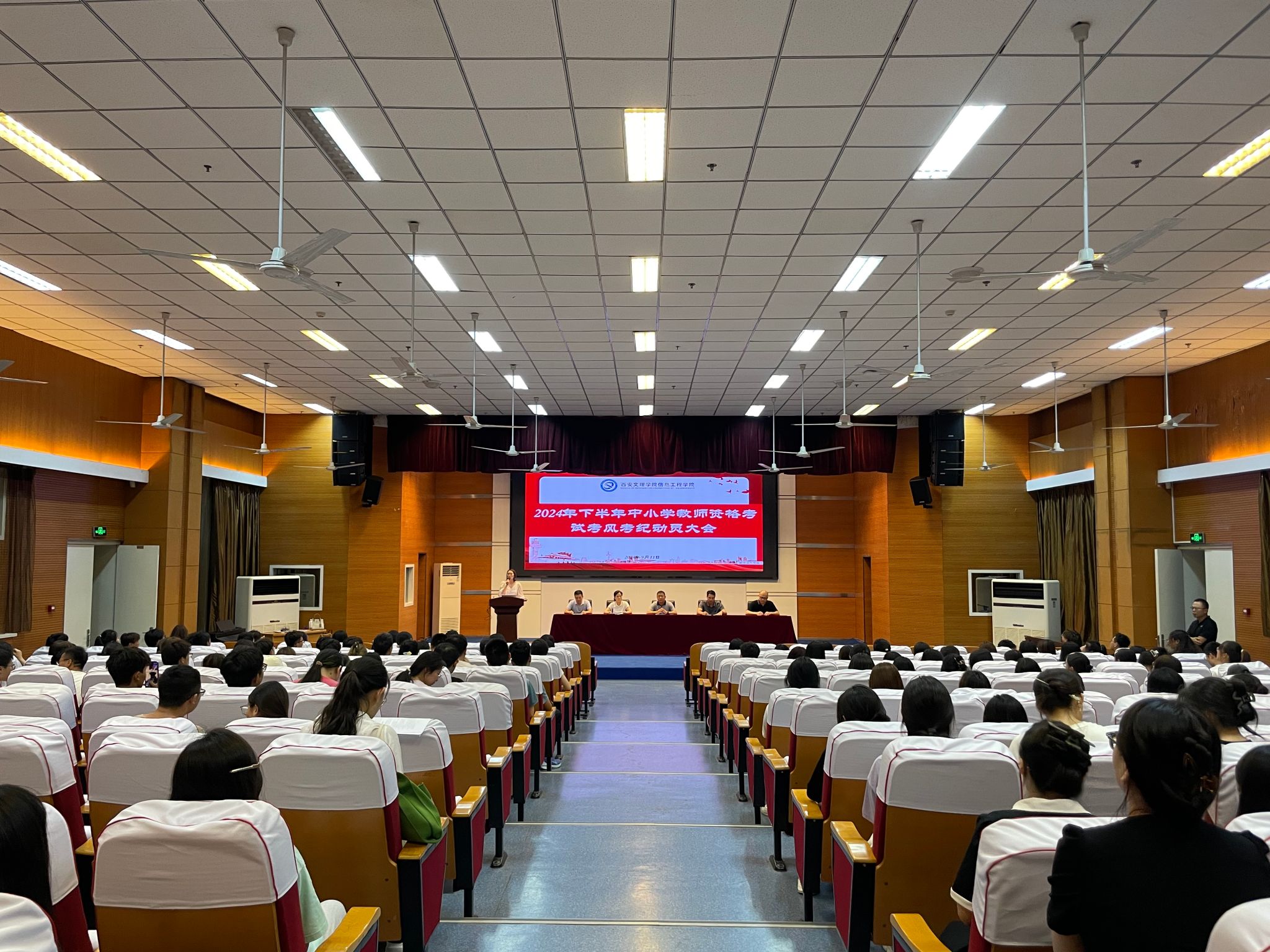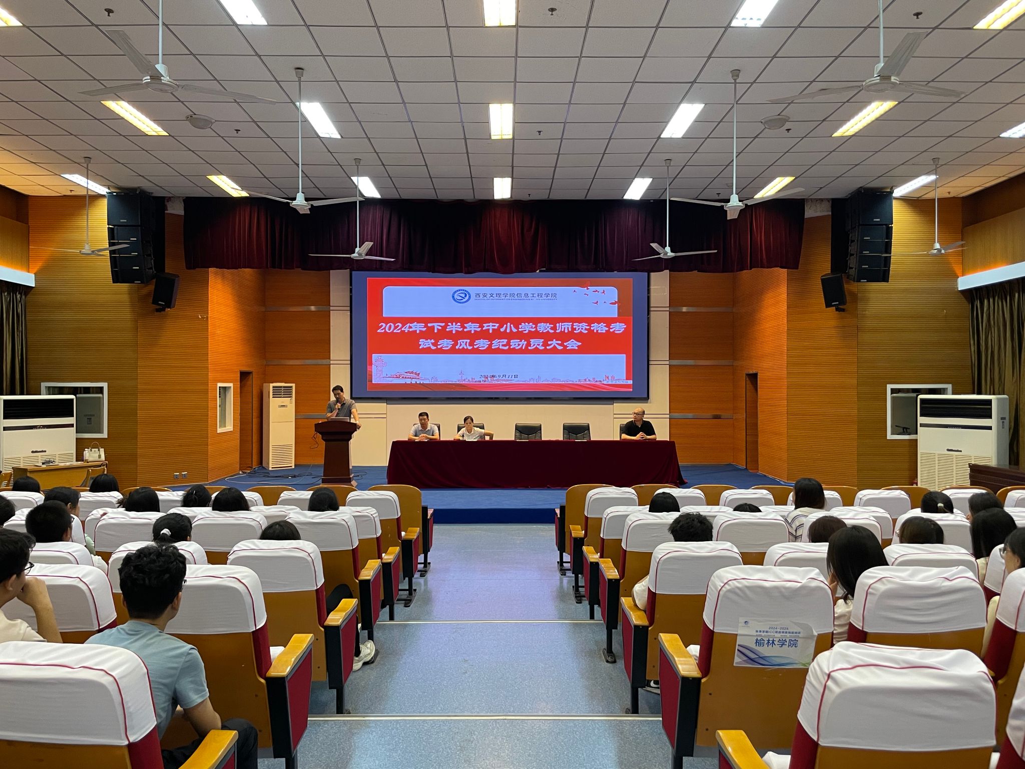 为了强化考生的纪律意识,弘扬诚信精神,进一步推进公司独具匠“信”学风建设之考风考纪建设,营造公平、公正、诚信的考试环境,2024年9月11日18:30英国365集团官网在明德楼A区报告厅召开了“2024年下半年中小学教团队格证考试”考风考纪动员大会。参加本次会议的有公司党总支书记王向阳,教学副经理陈广锋,党总支书副记许萌,数学系主任王宇副教授,数学与应用数学专业教研室主任陈寅博士,各带班辅导员老师及21级、22级203名考生。本次会议由辅导员老师任绒主持。