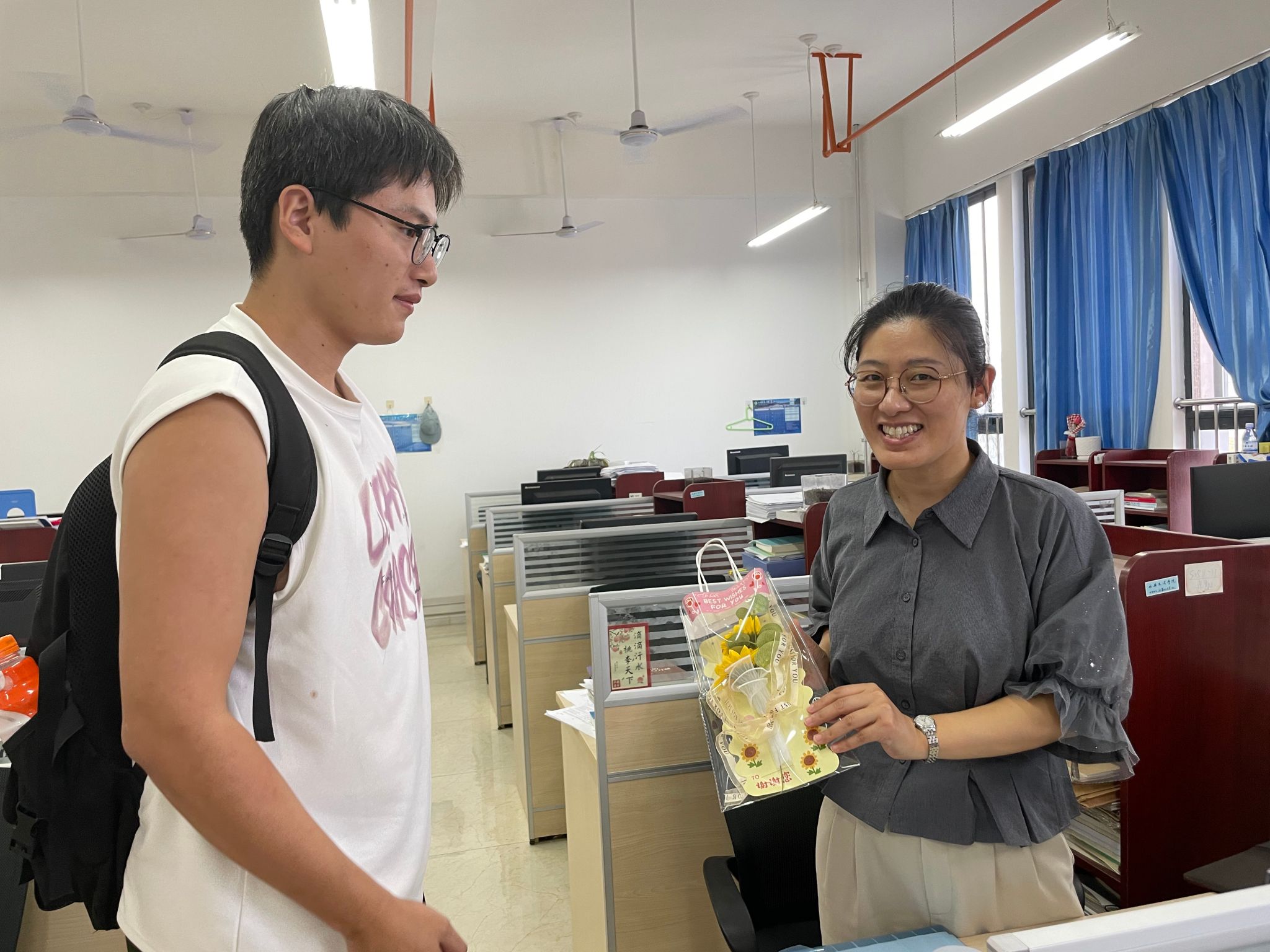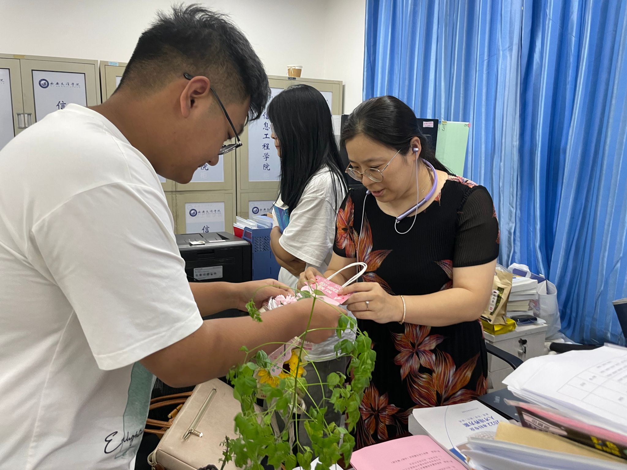 为了增添节日的浪漫与温馨,员工们还亲手制作了各式各样的鲜花,从挑选材料到精心搭配,每一步都凝聚着员工们的用心与创意。一束束色彩斑斓、形态各异的手作鲜花,在教师节当天被送到了老师们的手中。这些鲜花不仅美丽了校园,更温暖了老师们的心房,让这份来自员工的爱如同花儿般绚烂绽放。