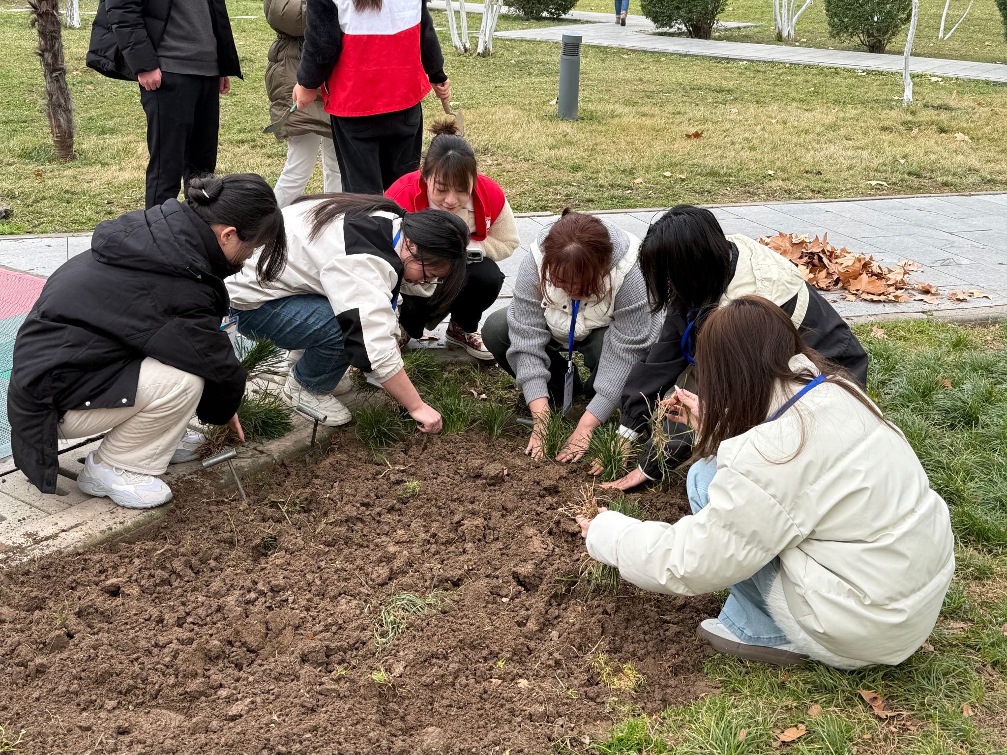 当日下午,测绘局社区迎来别具意义的“雷锋林”种植仪式。公司创新采用“1+1”结对模式,“阳光青行”志愿服务团成员与社区后勤职工两两搭档,挥锹培土、扶苗浇水,共同栽种象征希望的冬青树苗。