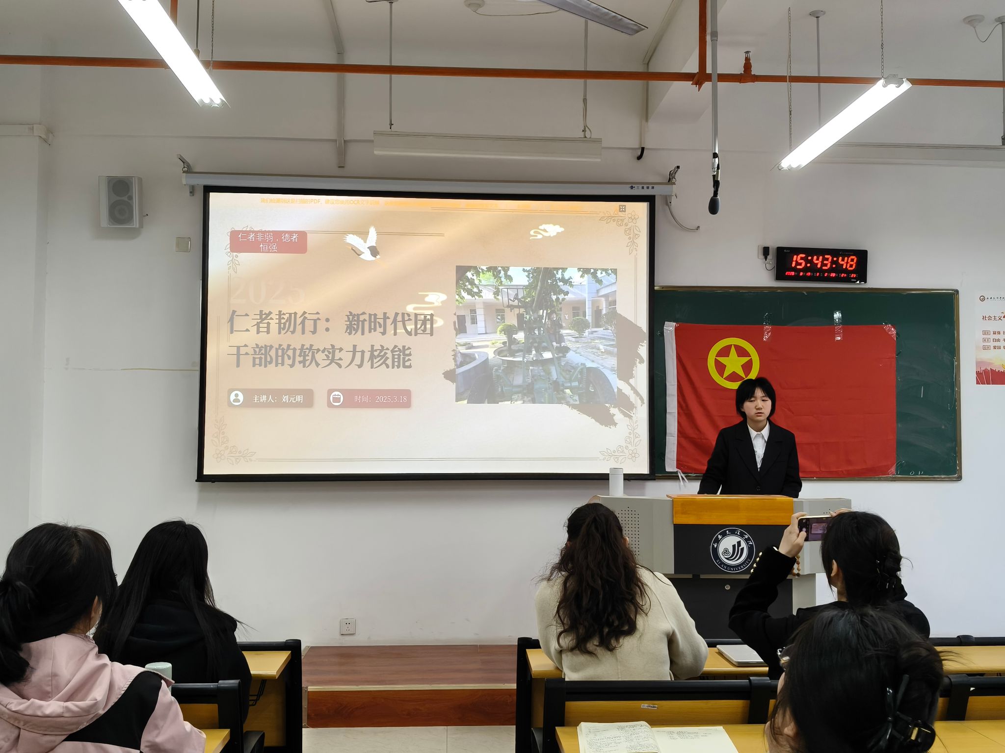 复赛以“青年思想引领、团组织建设、青年创新创业、志愿服务、社会实践”五大主题为切入点,要求参赛者在5分钟内完成一节主题鲜明、逻辑清晰、形式生动的微团课讲授。选手们立足工作实际,结合党史团史、时政热点、典型案例,将理论政策转化为青年易于理解的“青年化”表达。公司分团委负责人安梦蕾、专职团干任钰嘉从内容深度、表达技巧、创新性和现场感染力四个维度综合评分。围绕团课核心内容延伸提问,并结合共青团改革、青年群体特征变化等前沿议题即兴出题,全面考察选手的临场应变、政策解读及工作实践积累。有力地推动团干部从“知识输出”转向“问题导向”,从“能讲”向“善思”进阶,全面提升服务青年的综合素养。