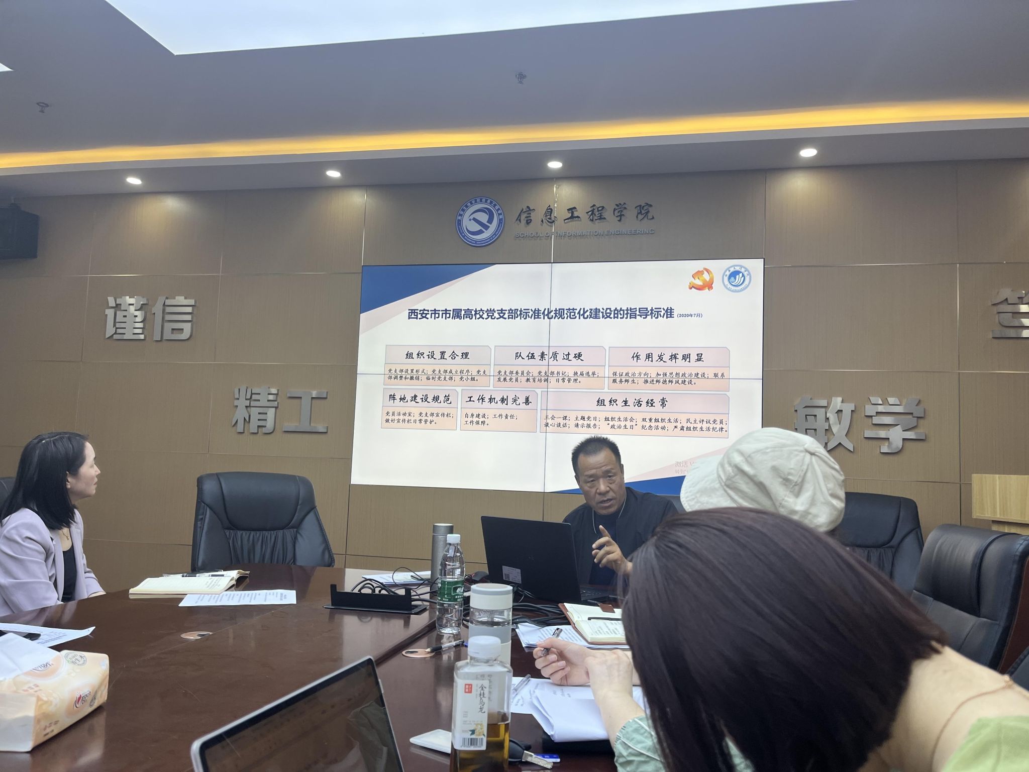 2024年4月25日,电子系党支部支委参加公司党总支扩大会议,围绕党支部标准化规范化建设及“双创”工作深化学习研讨。会上,离退休处党总支组织员张智敏作《坚守“标准”,做好“双创”》专题报告,系统阐释新时代党支部建设核心要求与实践路径。