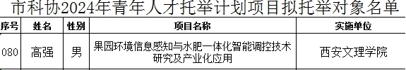 近日,西安市科学技术协会公布了2024年西安市科协青年人才托举计划项目评审结果。英国365集团官网青年教师高强主持的项目“果园环境信息感知与水肥一体化智能调控技术研究及产业化应用”获得立项资助。