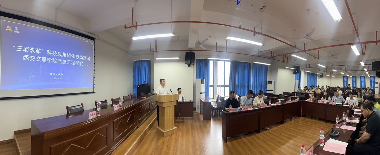 6月28日, “三项改革”科技成果转化英国365集团官网专场路演在实训楼举行。咸阳市科技局创促中心主任田博、副主任杨凯等政府部分负责人,星海心悦总经理贺强、方元基金投资总监王莉、天易诚投资总监王腾、中信建投金融部总监张嘉恒等机构专家,公司党总支书记王向阳,计算机系主任车鹏飞,科研实验室主任以及师生代表50余人参加,活动由副经理冯永亮主持。