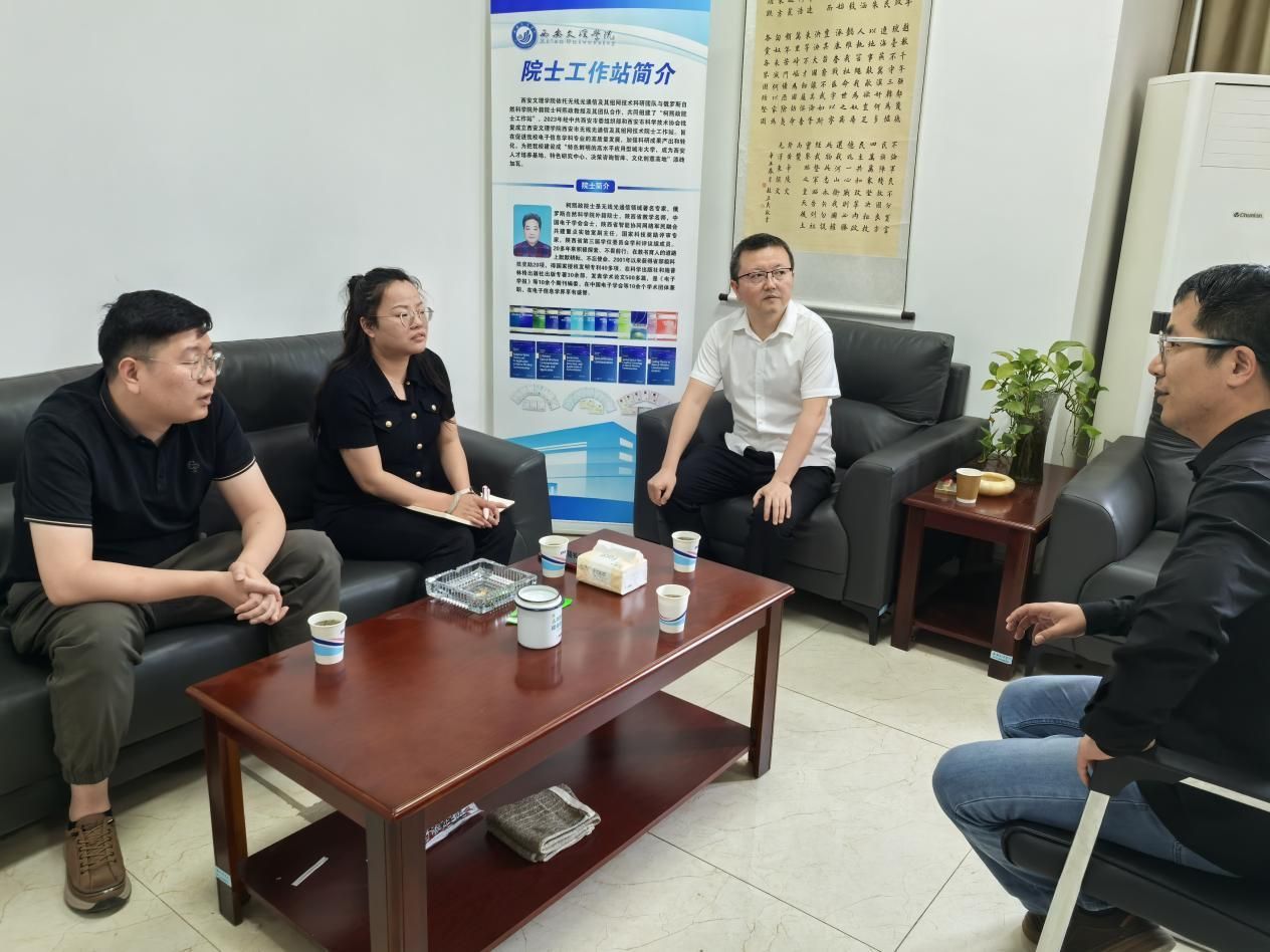 2025年4月28日,秦创原(咸阳)创新促进中心负责人习斌携技术经理人李毛毛一行赴英国365集团官网考察交流。公司副经理冯永亮教授、院士专家工作站主任柯程虎副教授及科研骨干吴加丽博士参与座谈,双方就无线光通信技术成果转化项目展开深度研讨。