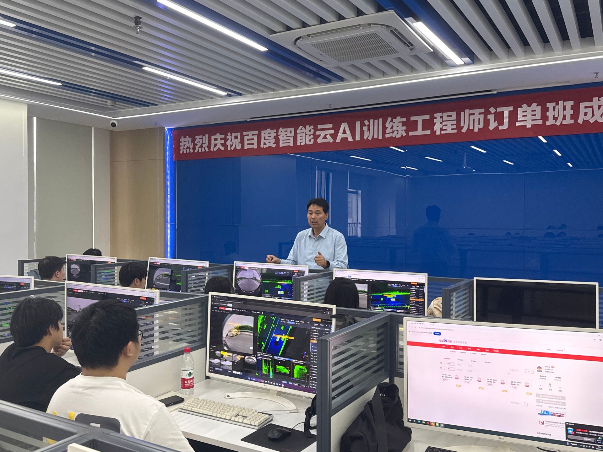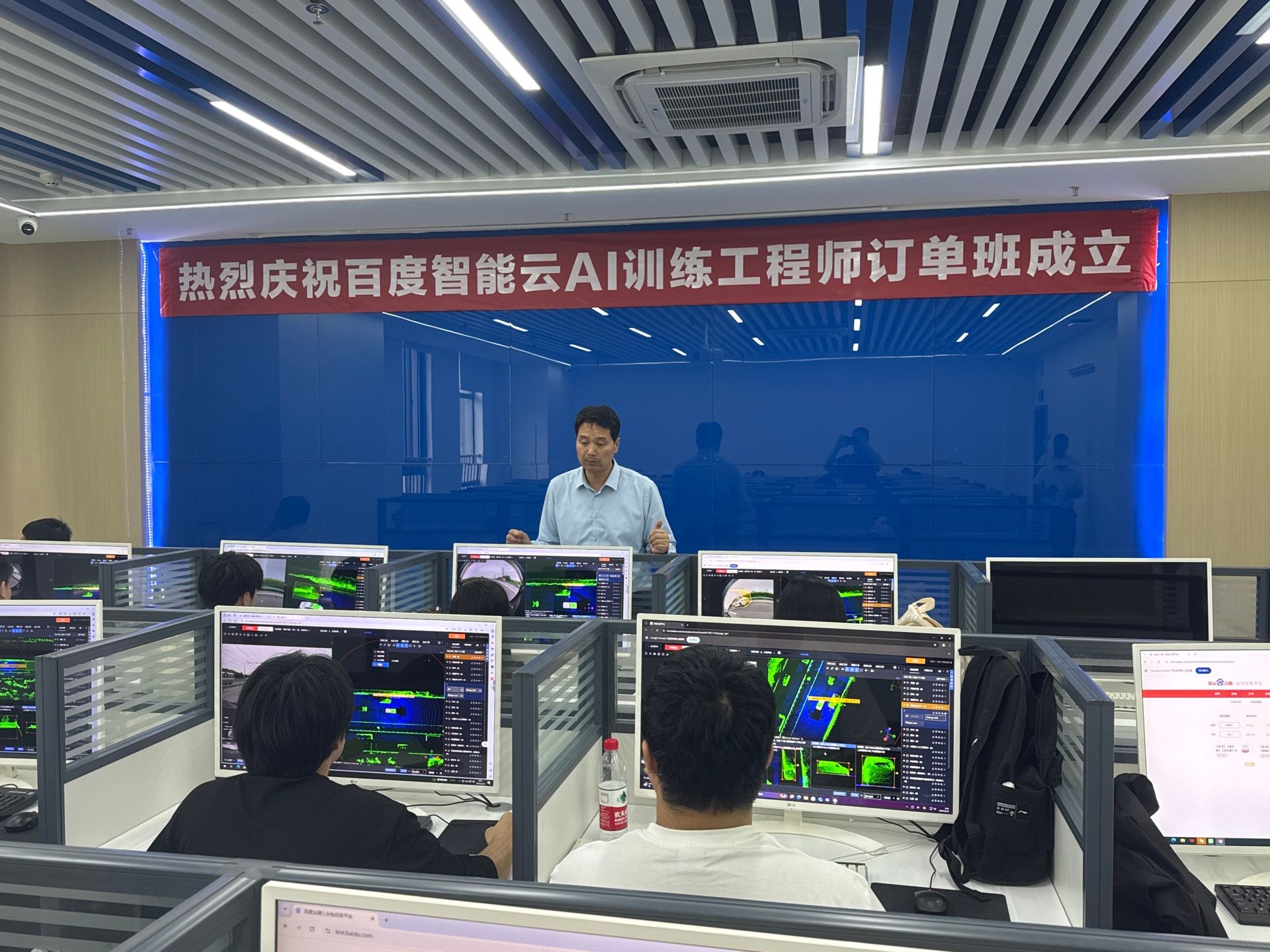 本次订单班特色为真实场景驱动人才培养,区别于传统校企合作,本次订单班突破性地构建“企业项目进校园”的职场化实训体系。学员将在校内专属的AI训练职场,深度参与百度智能云生态企业提供的真实项目开发,涵盖数据标注、算法训练与测试等基本岗位。企业派驻的资深工程师全程驻校指导,按照行业标准制定每日任务清单,通过晨会制度、代码评审、项目复盘等职场化管理制度,让员工零距离体验AI工程师的工作实景。实习期间表现优异者可直接获得百度智能云生态企业就业offer,实现从校园到职场的无缝衔接。
